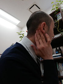耳のうしろに塗ります。優しくマッサージして循環を促します。