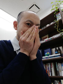 手で口と鼻を覆って呼吸します。刺激が強いオイルもあるので、目や目の周りには触らないように気をつけてください。
